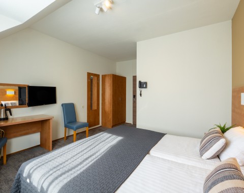Hotel room 2 beds Approximately 11 to 14 m² Bathroom with shower Coffee and tea making facilities Room only accessible by stairs 45,00 p.p. More information Hotel room budget 2 beds Approximately 9 to 10 m² Coffee and tea making facilities Seating area Room only accessible by stairs 35,00 p.p. More information Hotel room basic 2 beds Approximately 8 to 12 m² Coffee and tea making facilities Seating area Room only accessible by stairs 40,00 p.p. More information Hotel room balcony 2 beds Approximately 14 m² Coffee and tea making facilities Balcony Room only accessible by stairs 50.00 p.p. More information 2-person apartment 2 beds Bathroom with shower Kitchen unit with refrigerator Electric hob and combi microwave 85.00 per night More information 4-person apartment 2 bedrooms 4 beds 2 bathrooms with shower and/or bath Fully equipped kitchen 125.00 per night More information